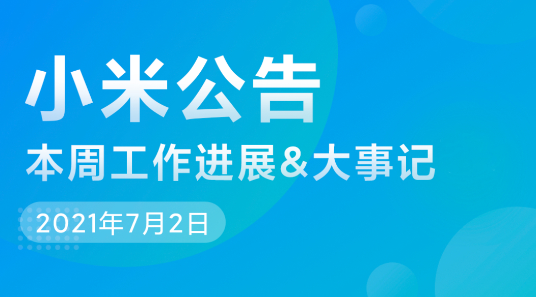| 小米社区 | 来自PC端 | https://cdn.cnbj1.fds.api.mi-img.com/middle.community.vip.bkt/34c2970e5566f1bc388... | 置顶「小米公告」0702:本周进展通报&大事记 | 置顶 | 亲爱的米粉朋友们,大家好: 关于大家关心的问题以及小米想和大家分享的信息,将会以周度小米公告的方式向所有米粉通报。请大家锁定每周五小米社区(XIAOMI.CN)小... | | | | | 194.3w浏览 | 194.3w | https://rs.vip.miui.com/vip-resource/prod/mio-pc/v1/static/media/res_.77116916.sv... | 1656 | https://rs.vip.miui.com/vip-resource/prod/mio-pc/v1/static/media/zan.8abff612.svg... | 1.3w | https://www.xiaomi.cn/ | https://www.xiaomi.cn/ | 2021-07-05 06:48:00 | 2021-07-05 06:48:00 | 2021-07-05 06:48:00 |